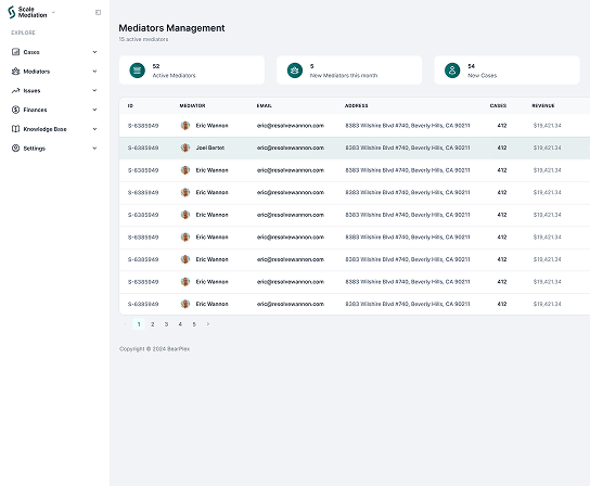 Scale Mediation’s built-in CRM automatically pulls every participant from your mediations into an organized, trackable contact list — no manual entry or spreadsheets required. All case details and outcomes flow seamlessly into your CRM, helping you stay connected and manage your practice more efficiently.