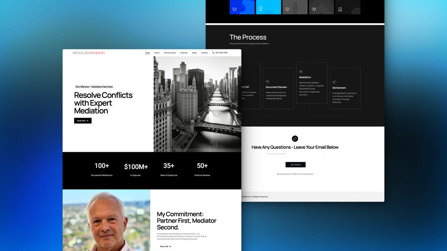 - Success Metrics Integration: Highlighted Eric Wannon’s impressive track record with statistics on successful mediations, the total value of disputes resolved, and positive reviews to build trust and credibility among site visitors. efficient process.