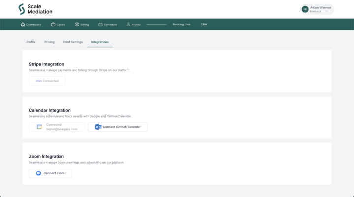 After authorizing, you will be redirected back to your Scale Mediation account page. The integration section will now show a “Connected” status, confirming that the setup is complete.